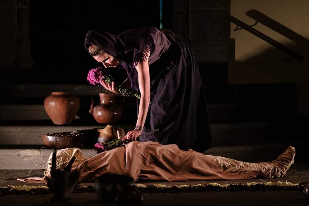 Acción de duelo que lee a Sófocles en dos momentos históricos del archipiélago canario: la esclavitud africana de los ingenios azucareros y la migración clandestina actual. Antígona Negra busca entre los muertos el cadáver de su hermano.